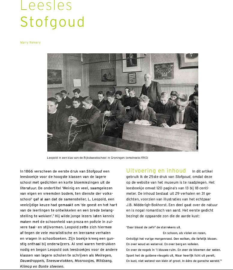Tekst en foto over L.Leopold en Stofgoud in de periodiek van het Onderwijsmuseum
